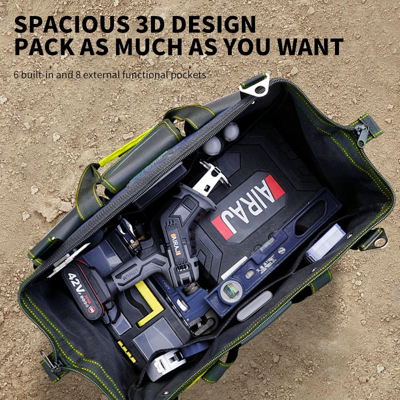 The Multifunctional Electrician Tool Bag is built to provide reliable storage and organization for a wide range of tools and equipment. Made from durable 1680D Oxford cloth, it offers excellent resistance to wear, tears, and heavy daily use. The waterproof material helps protect your tools from moisture, dust, and harsh working conditions. Its large capacity design provides plenty of space for hand tools, power tools, and accessories. Multiple pockets and compartments allow you to keep your tools neatly arranged and easy to access. The sturdy handles ensure comfortable and secure carrying from job site to job site. Reinforced stitching enhances durability and long-term performance. This versatile bag is ideal for electricians, mechanics, carpenters, and DIY enthusiasts. The strong construction helps keep your tools safe and organized in workshops, vehicles, or construction sites. Stay efficient and prepared with this high-capacity and dependable tool storage bag.