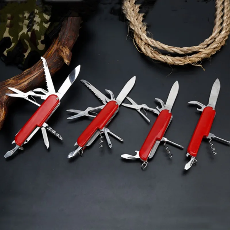 This multifunctional Swiss folding pocket knife is a versatile tool designed for outdoor adventures, camping, and everyday use. Available in 5, 7, 9, and 11-in-1 configurations, it combines multiple tools into one compact and portable design. Made from high-quality stainless steel, it offers durability, corrosion resistance, and long-lasting sharpness. The foldable structure ensures safe storage while allowing quick and easy access to each tool when needed. Equipped with essential functions such as knife blades, pliers, screwdrivers, and more, it is perfect for handling various tasks in the outdoors. Lightweight and easy to carry, it fits conveniently in your pocket, backpack, or gear kit. Ideal for camping, hiking, hunting, and survival situations, it provides reliable performance in different environments. The ergonomic design ensures a comfortable grip for better control during use. Built for practicality and convenience, it is suitable for both beginners and experienced outdoor enthusiasts. This multifunctional pocket knife is an essential and dependable tool for any adventure or daily task.