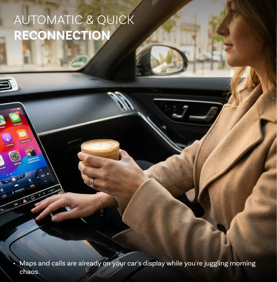 Upgrade your driving experience with the Ottocast Wireless CarPlay Adapter. This 2 in 1 device enables wireless CarPlay and Android Auto for seamless connectivity. Designed for compatibility with 98% of cars, it offers a hassle-free upgrade. Simply plug and play without complicated installation or setup. Enjoy fast and stable connections with advanced Bluetooth 5.0 and WiFi technology. Access navigation, music, calls, and apps directly from your car display. Eliminate messy cables and keep your dashboard clean and organized. Compact and portable, it fits easily into your vehicle setup. Perfect for daily commutes, road trips, or business travel. Drive smarter and safer with this convenient wireless car adapter.