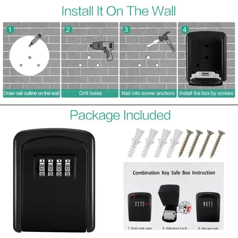 Protect and organize your keys with this durable outdoor metal key safe designed for everyday security. Built from strong metal materials, it offers dependable resistance against tampering and wear. The 4 digit combination lock allows you to create a personalized code for secure and convenient access. Its wall mounted design makes it perfect for installation near entryways, garages, or rental properties. Designed for outdoor use, it helps shield your keys from weather conditions like rain and dust. The compact size keeps it discreet while still providing enough space for multiple keys or small valuables. Ideal for homeowners, Airbnb hosts, and property managers who need reliable key access solutions. The easy to use locking system ensures quick entry without the need for carrying extra keys. Its sturdy construction enhances safety while maintaining long term durability. Upgrade your home security with a practical and secure key storage solution built for convenience and peace of mind.