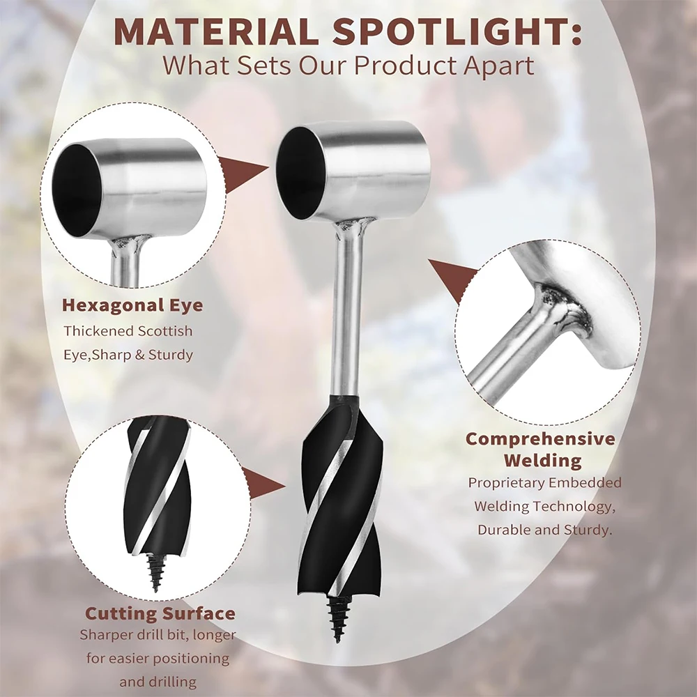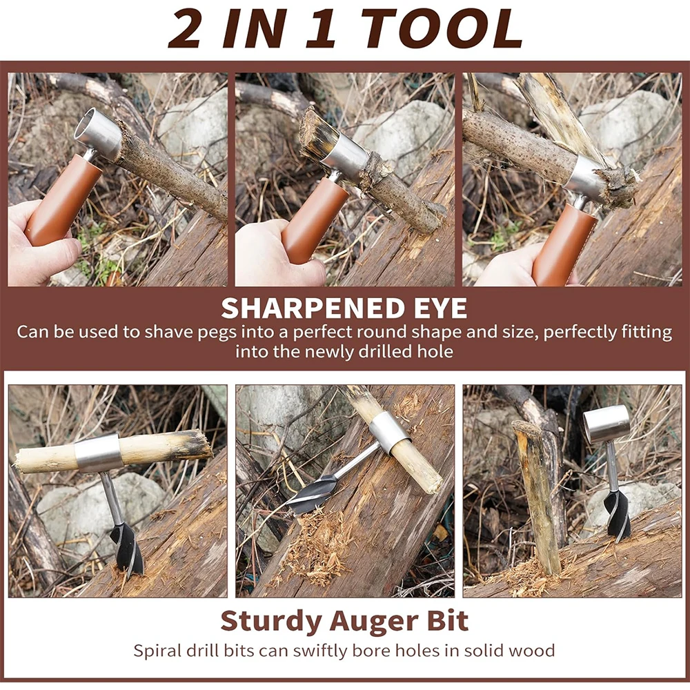 This survival hand auger drill is a reliable tool designed for bushcraft, camping, and outdoor woodworking. It allows you to easily drill holes in wood for building shelters, traps, or camp structures. The sharp drill bit provides efficient cutting through branches and logs. Its scotch eye design allows a sturdy stick to be inserted for extra leverage while drilling. Made from durable metal, the auger is built to withstand rugged outdoor conditions. The compact size makes it easy to carry in backpacks or survival kits. A protective storage box keeps the tool safe and organized during transport. The included hook adds extra convenience for hanging or securing the tool. Ideal for bushcraft enthusiasts, campers, and survivalists who build structures in the wild. Strong, practical, and portable, this hand auger drill is an essential tool for outdoor survival gear.
